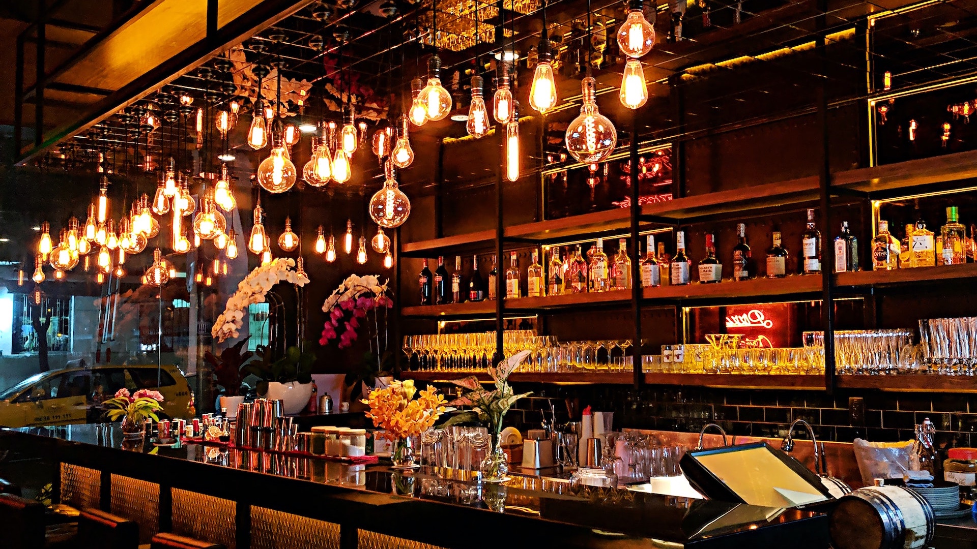 | PC用 たくさんの電球が並ぶバーのカウンターの素材 |