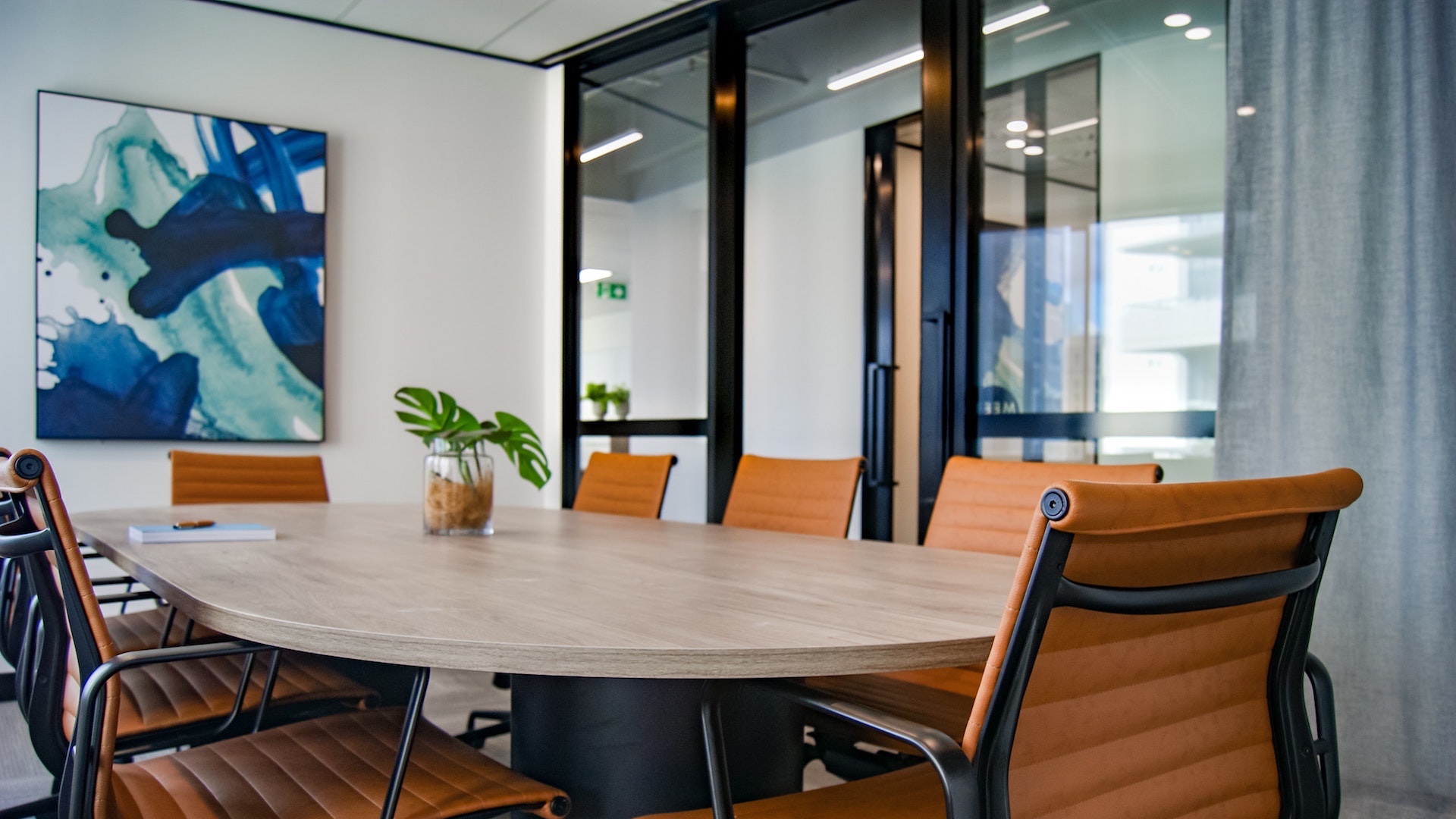 | PC用 オレンジの椅子のある会議室の素材 |