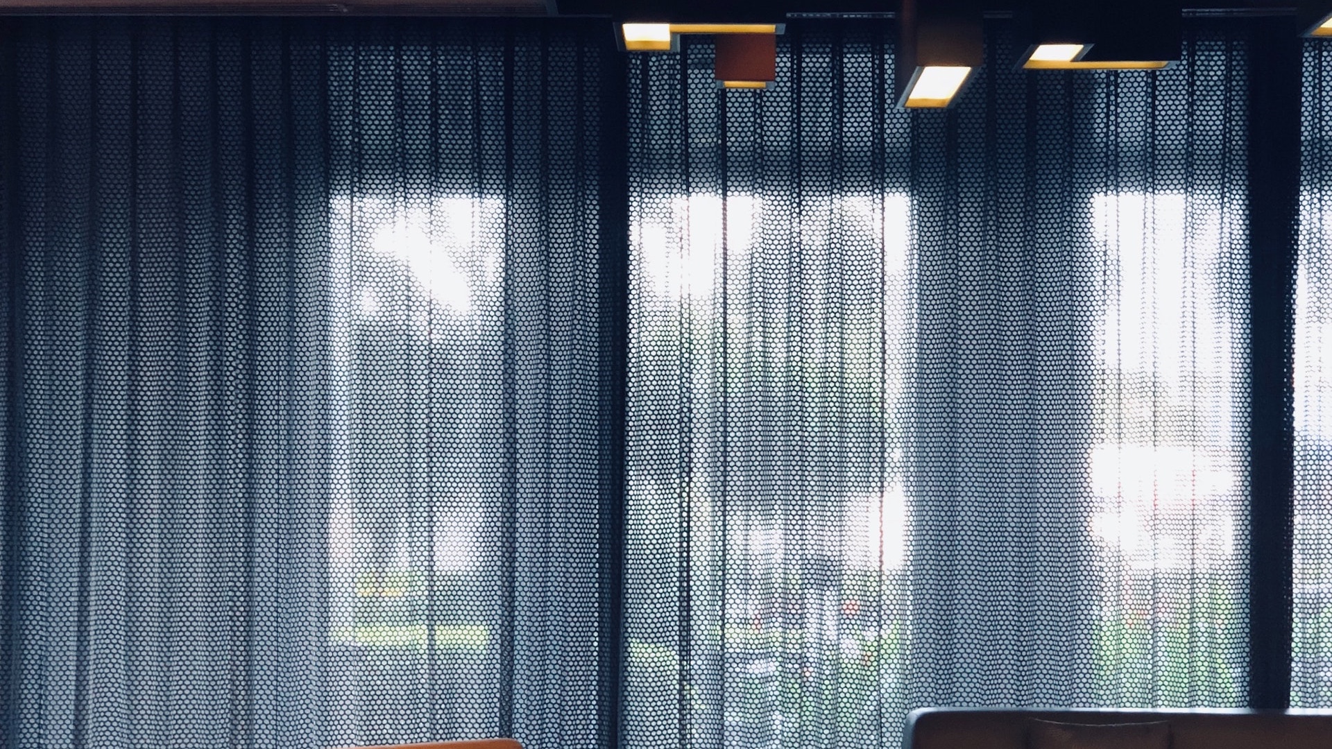 青いカーテンのかかる大きな窓のある部屋 部屋のバーチャル背景 2020.11.14 Photo by Faisal Waheed on Unsplash Download Now! 青いカーテンのかかる大きな窓のある部屋の素材