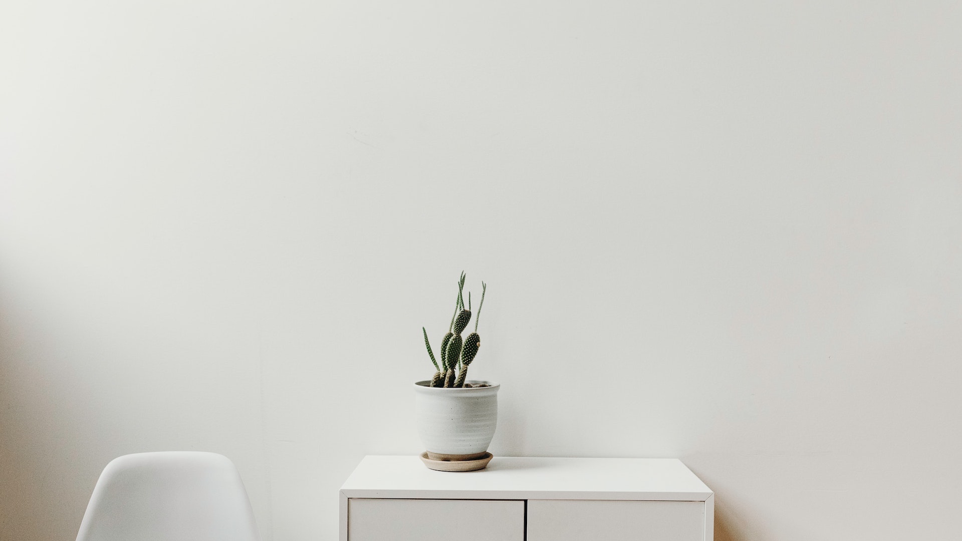 | PC用 白い椅子と机とサボテンの素材 |