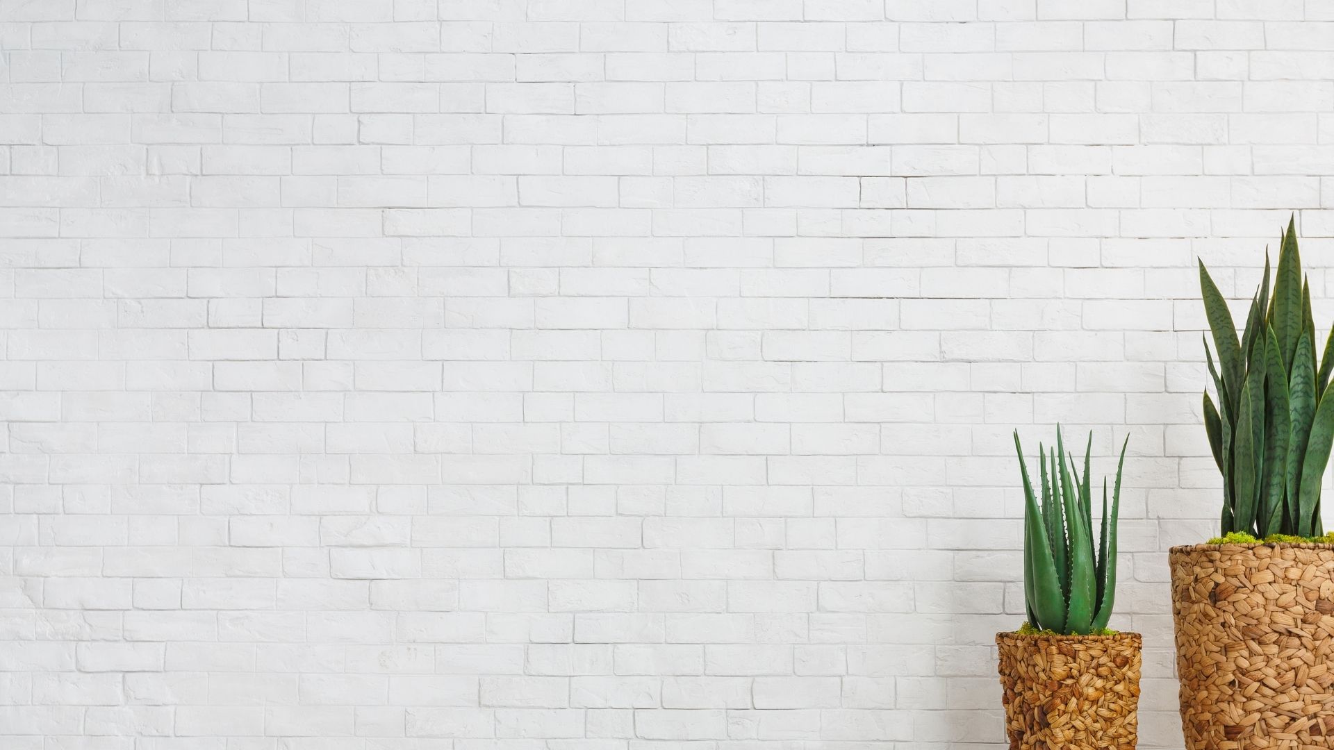| 白いレンガの壁と観葉植物の素材 |