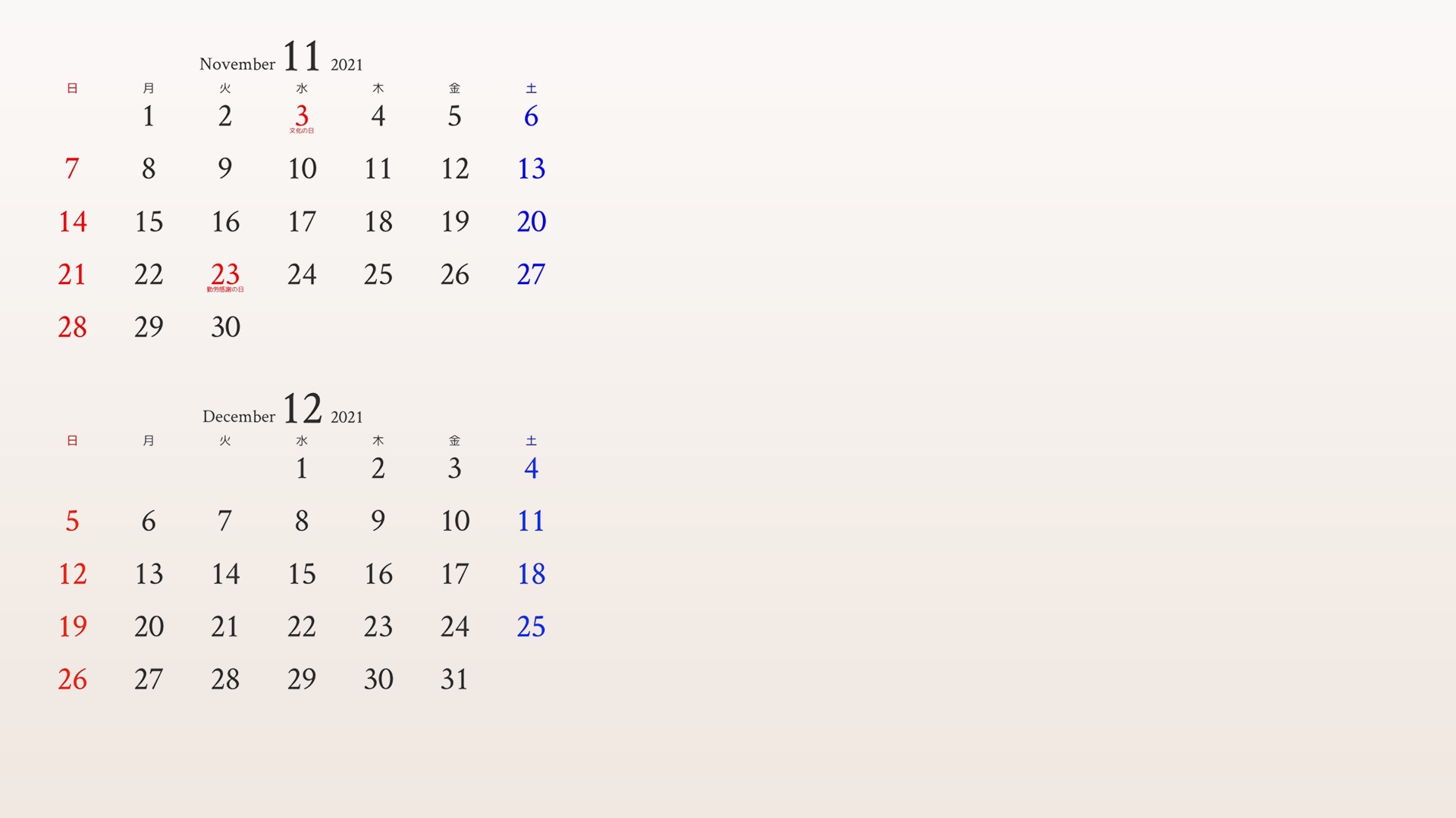 11月と12月カレンダーのカレンダーがついたアイボリーの背景