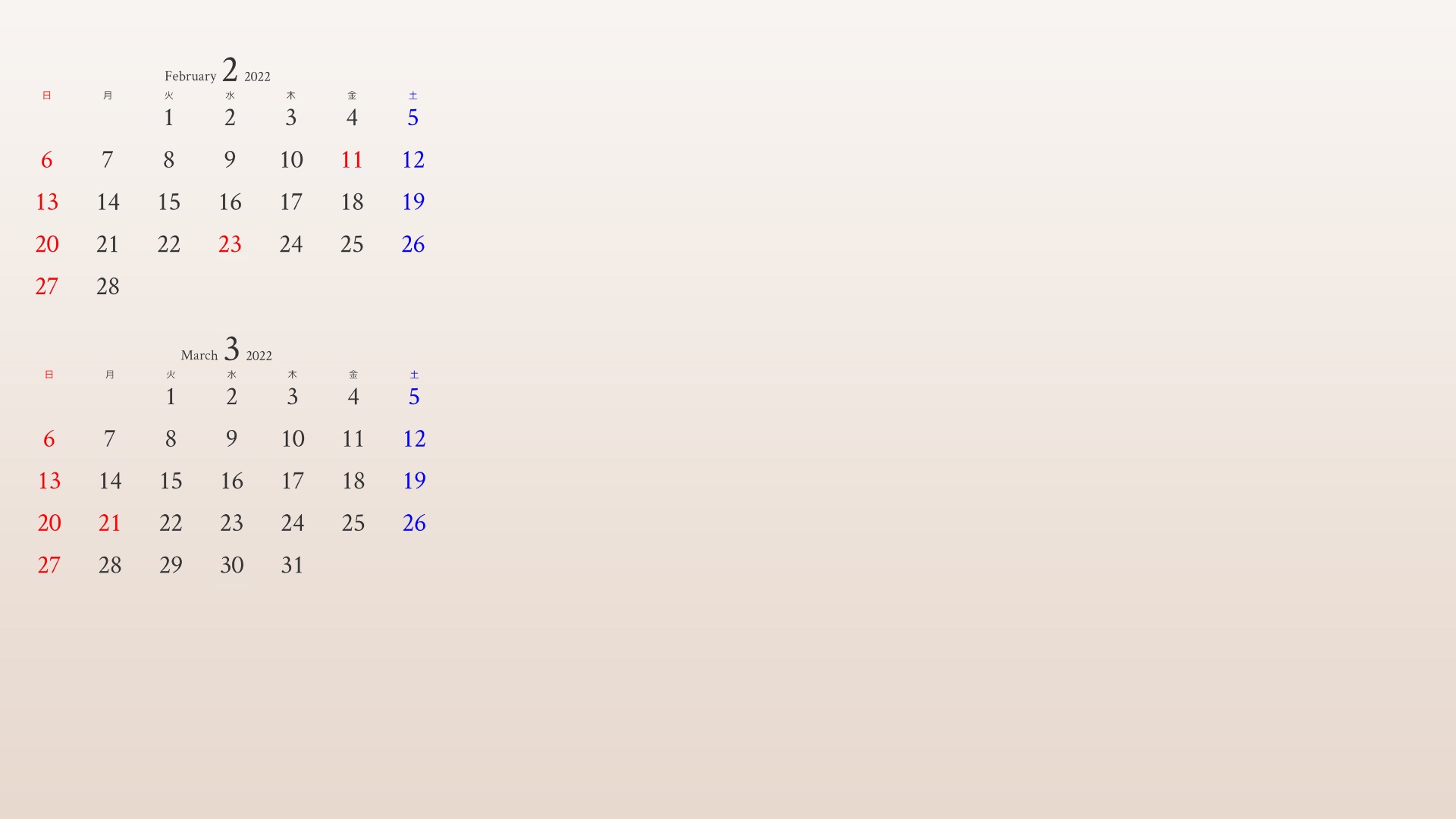 2月と3月のカレンダーのカレンダーがついたアイボリーの背景