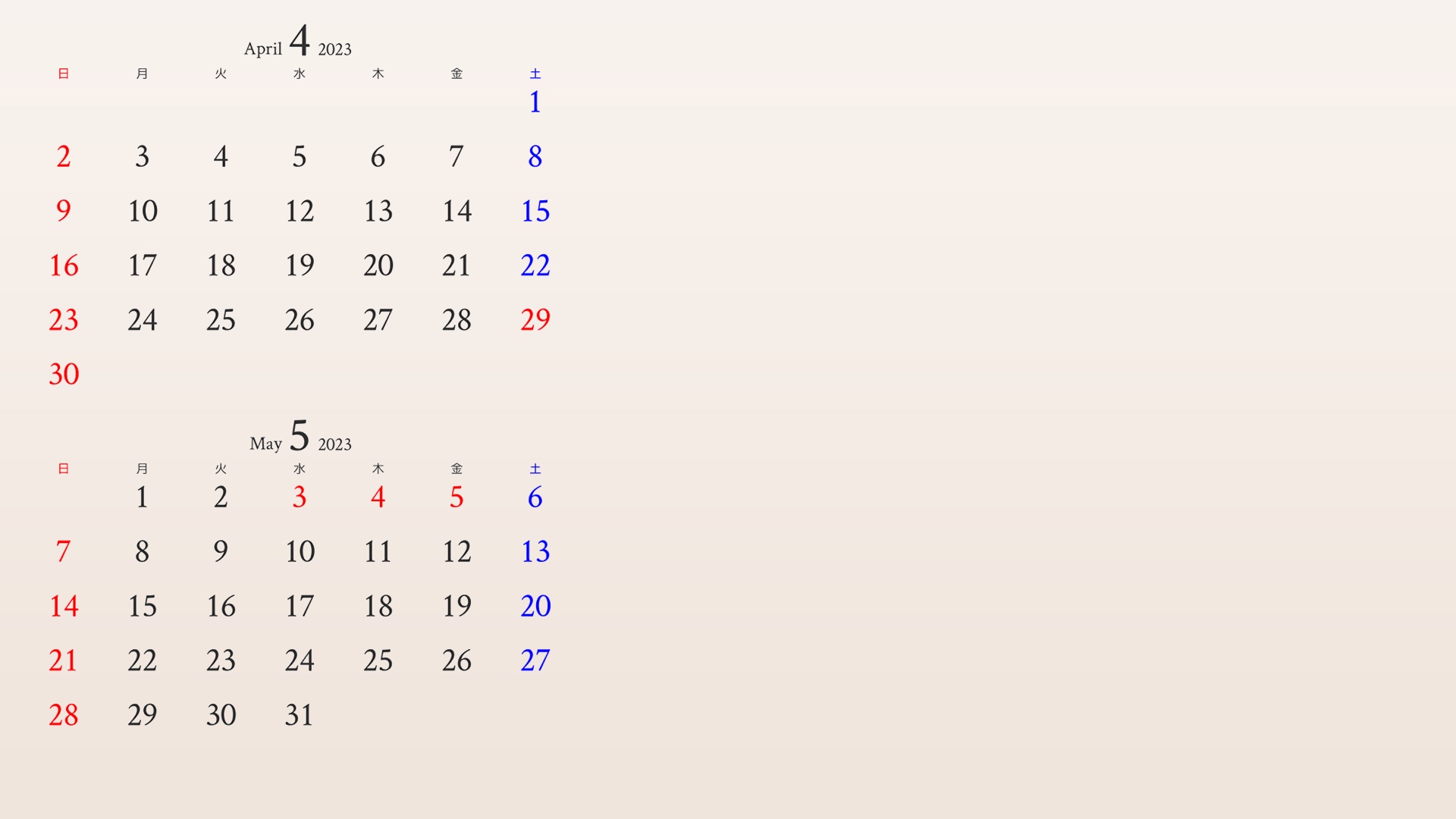 4月と5月のカレンダーがついたアイボリーの背景