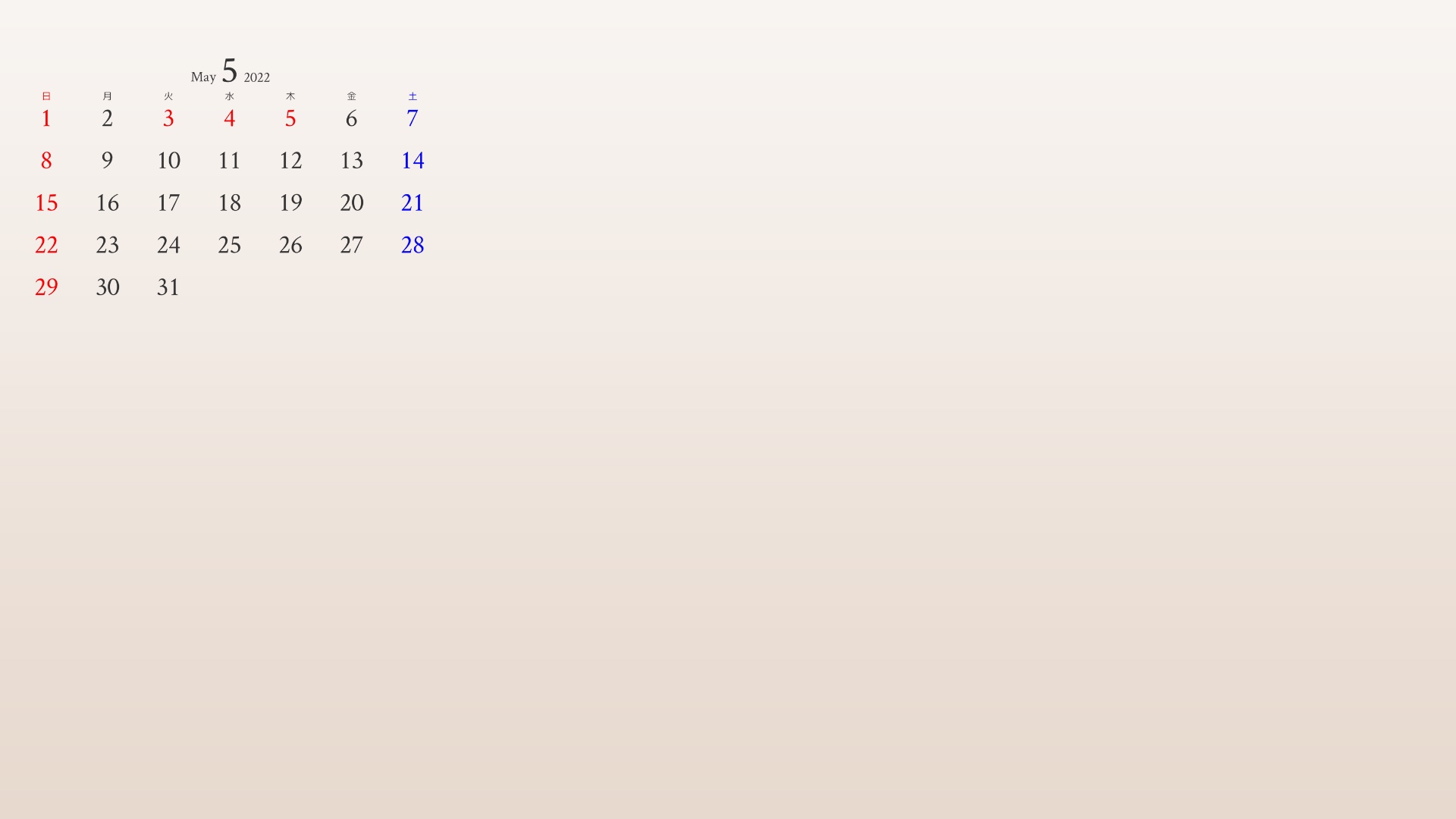 5月のカレンダーがついたアイボリーの背景