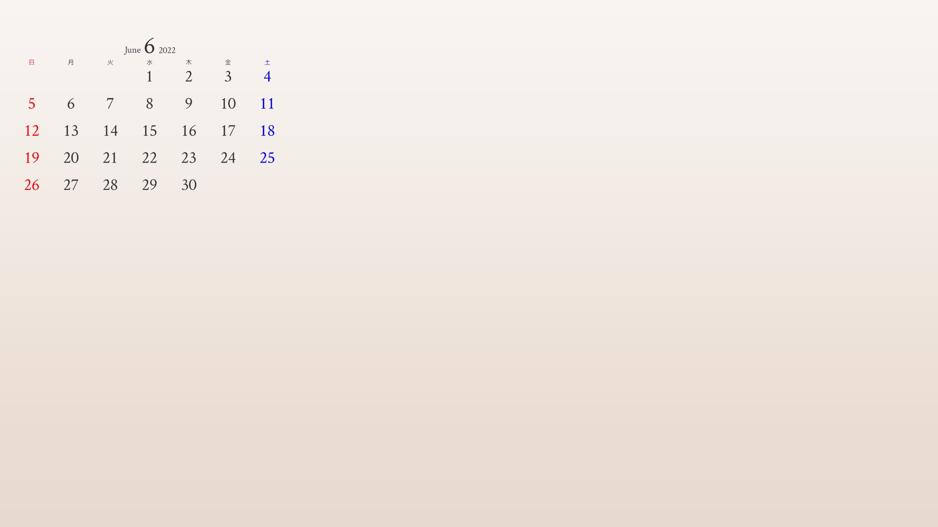 6月のカレンダーがついたアイボリーの背景